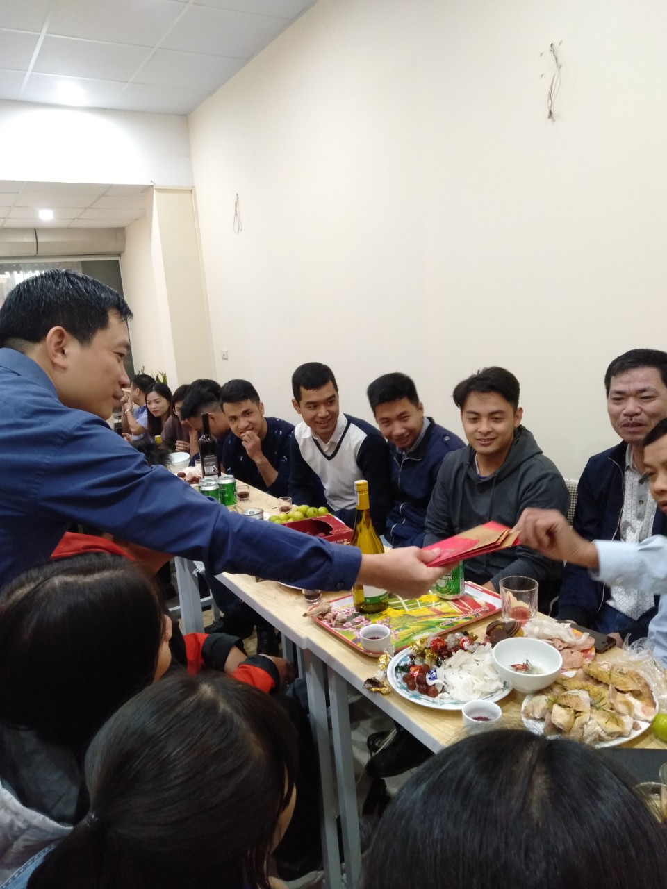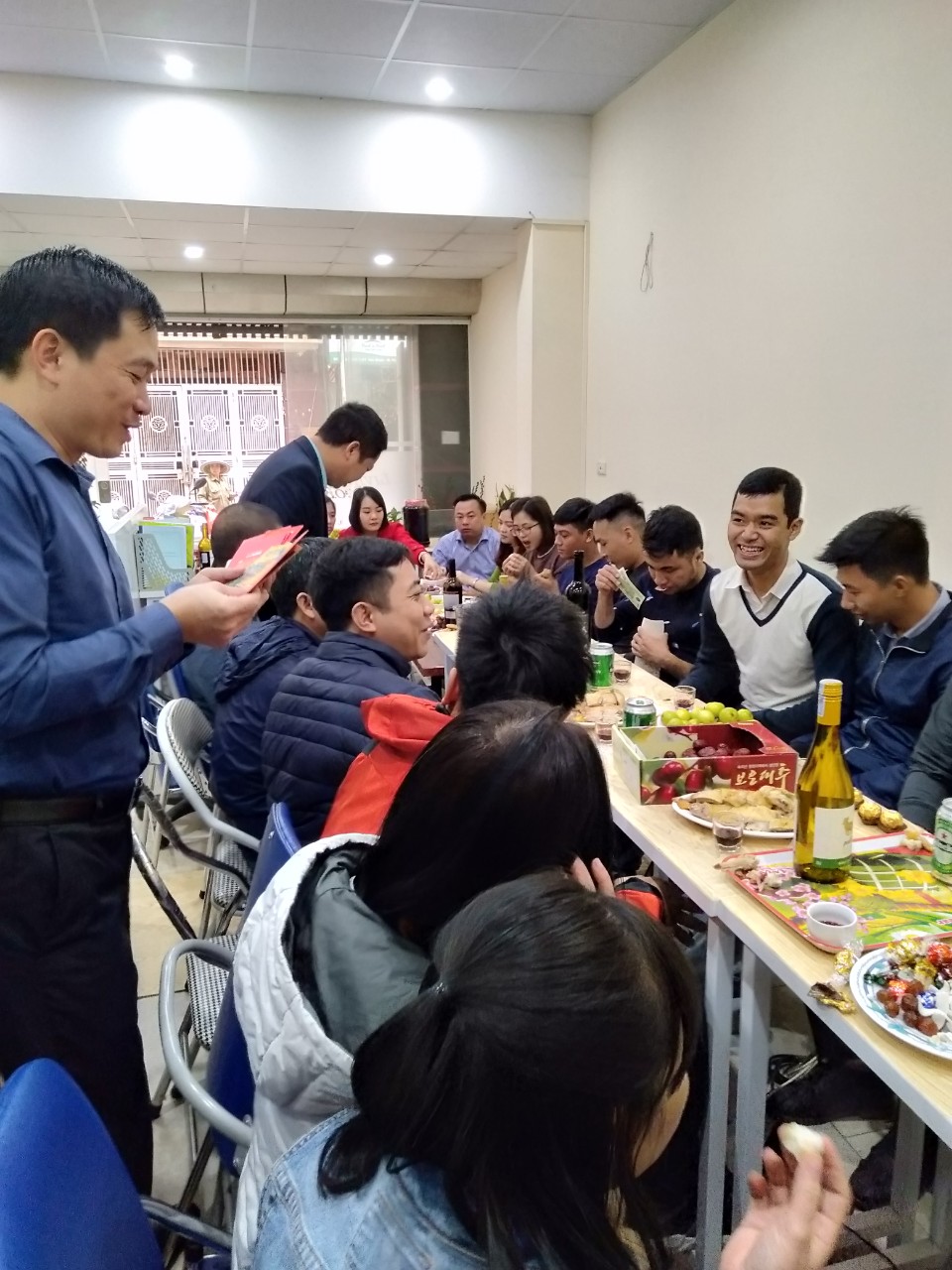 Thay mặt ban lãnh đạo công ty, Ông Phạm Thế Đăng – Giám đốc công ty đã gửi những lời chúc Tết đầy thân tình và ý nghĩa đến toàn bộ CB CNV. Tiếng sâm panh nổ giòn, tiếng leng keng cụng ly, tiếng nói cười rộn rã đã làm cho bầu không khí đầu năm thật ấm cúng như một gia đình. Những bao lì xì đỏ được trao gửi như lời cầu chúc cho nhau niềm vui, sức khỏe và thành công trong năm mới Kỷ Hợi.
