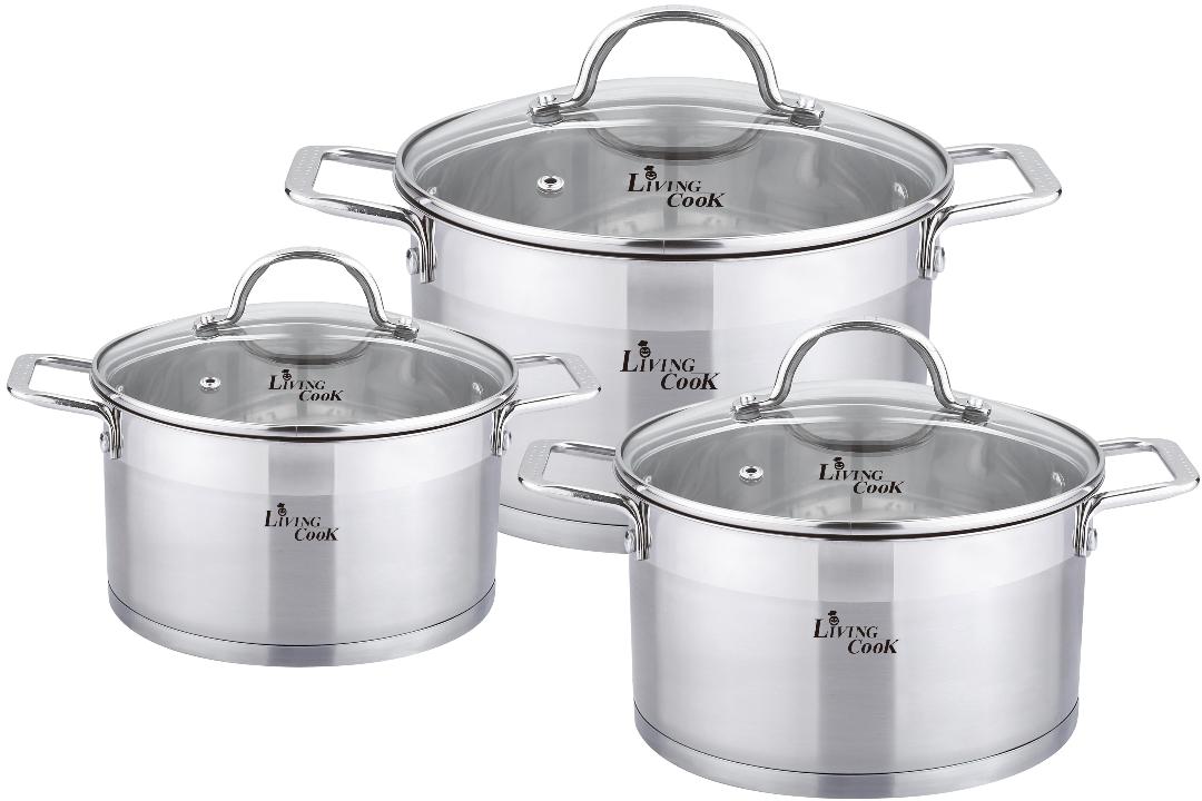 Bộ nồi Livingcook với 5 lớp đáy hàn dính với nhau. Hai lớp ngoài inox , đã được xử lý để giảm thiểu tối đa phản ứng hóa học. Lớp ở giữa là 2 tấm nhôm và 1 lớp sắt tròn, tăng khả năng dẫn nhiệt. Vung làm từ kính cường lực trong suốt, giúp người trợ thuận tiện quan sát quá trình nấu nướng cũng như thực phẩm bên trong mà không cần mở nắp nhiều lần. Quai và núm vung làm từ nhựa chịu nhiệt, liên kết với nồi bằng phương pháp đinh tán và ốc vít. Phần quai thiết kế to bản, dễ cầm nắm và tránh bị bỏng khi chạm phải.